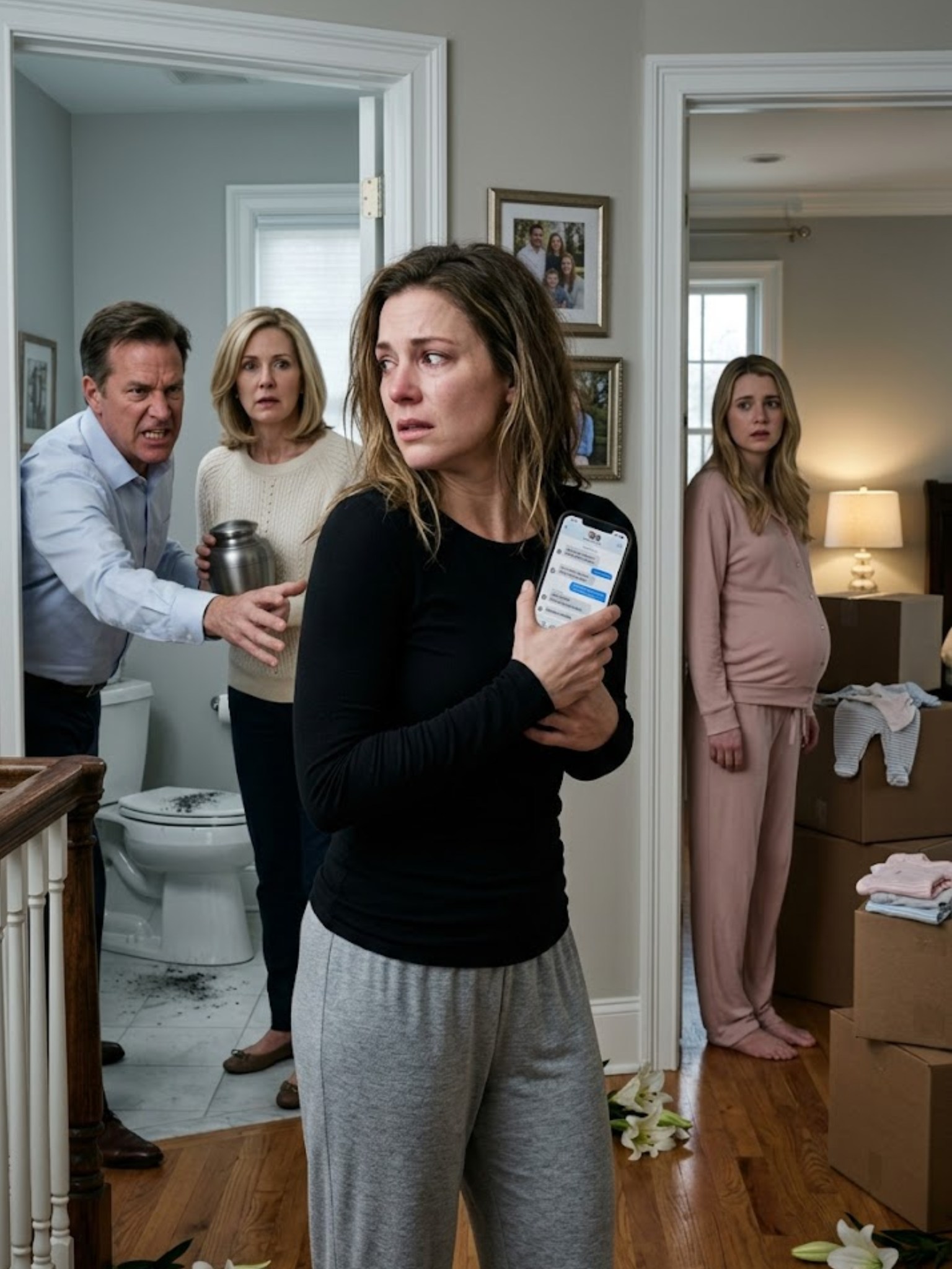Je suis entrée dans ma salle de bain principale et j’ai surpris ma mère en train de jeter les cendres de mon fils décédé dans les toilettes pour que ma sœur enceinte puisse occuper ma chambre. Mais lorsque mon père est entré, il a jeté un coup d’œil à l’urne vide.