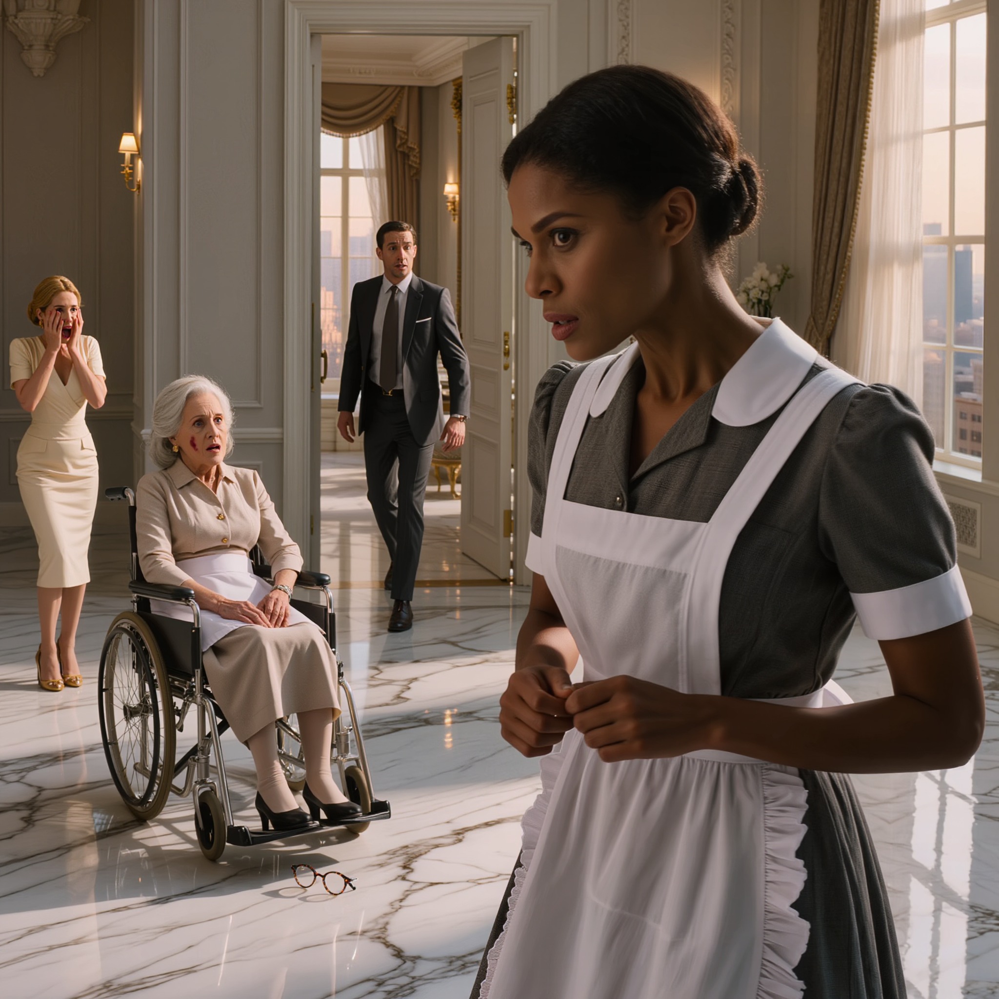 Lorsque la fiancée du milliardaire a giflé sa mère en fauteuil roulant, la femme de chambre a traversé le sol en marbre et a dit : « Ne la touchez plus. » Mais lorsqu’il est entré dans le penthouse et a trouvé sa fiancée par terre, sa mère tremblante et une paire de lunettes cassées à côté du fauteuil, personne dans cette pièce n’était préparé à la vérité qui s’était accumulée en silence pendant des mois.