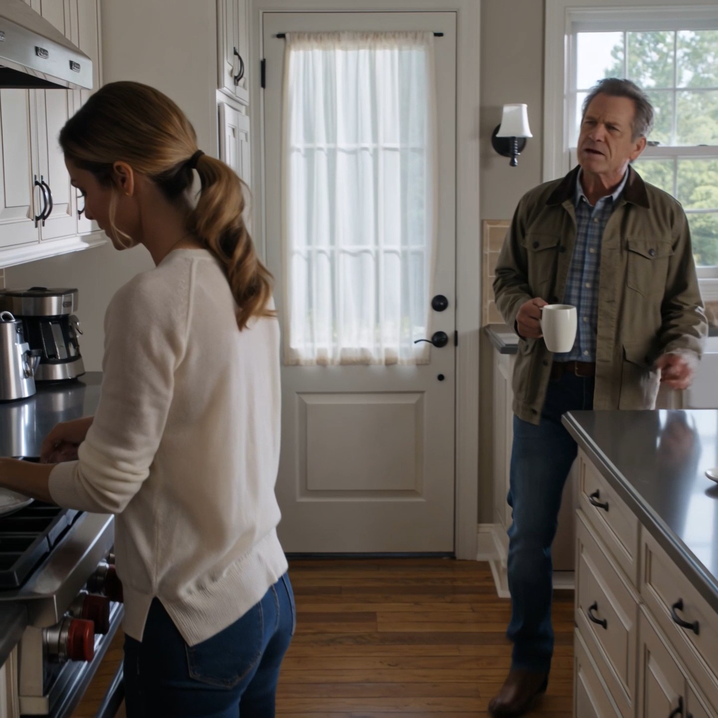 Mon père se tenait sur le perron, vêtu de sa vieille veste de pêche, la mâchoire serrée à faire pâlir une pierre. Derrière lui, ma mère, assise sur le siège passager de leur berline, portait d’énormes lunettes de soleil. Le moteur tournait, et ses mains gesticulaient nerveusement tandis qu’elle parlait toute seule ou au pare-brise.