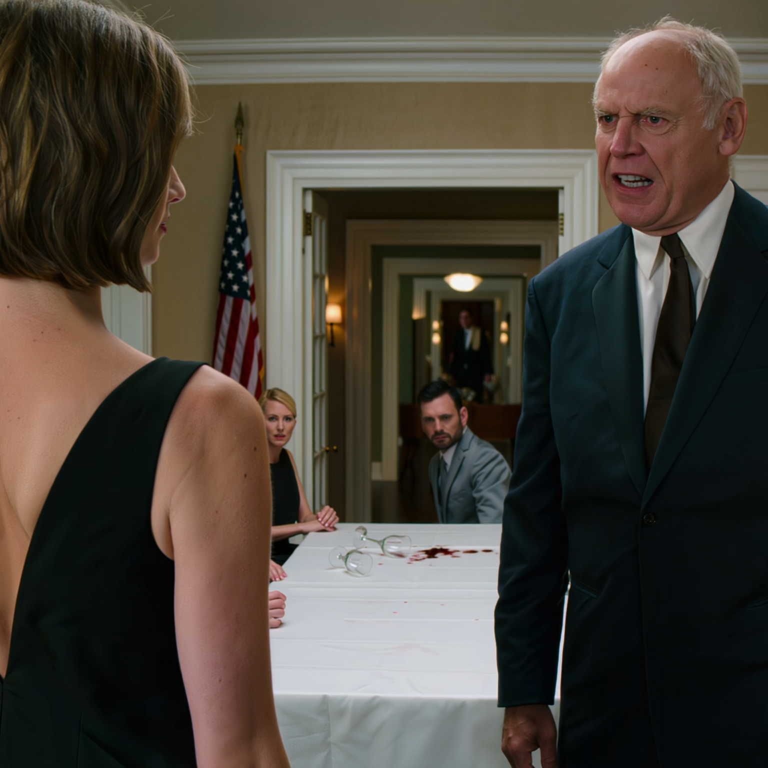 Un instant, le salon privé du Bernardin n’était que le théâtre discret de la richesse new-yorkaise : l’argenterie contre la porcelaine, un serveur glissant avec une sole de Douvres, des voix basses travaillées pour paraître naturelles. L’instant d’après, un verre de Bordeaux en cristal heurta le bord de la table près de mon assiette à pain et se brisa en éclats rouges et scintillants. Le vin ruissela sur la nappe blanche en fins ruisseaux. Vingt convives s’immobilisèrent d’un coup, comme si on avait tiré la prise.