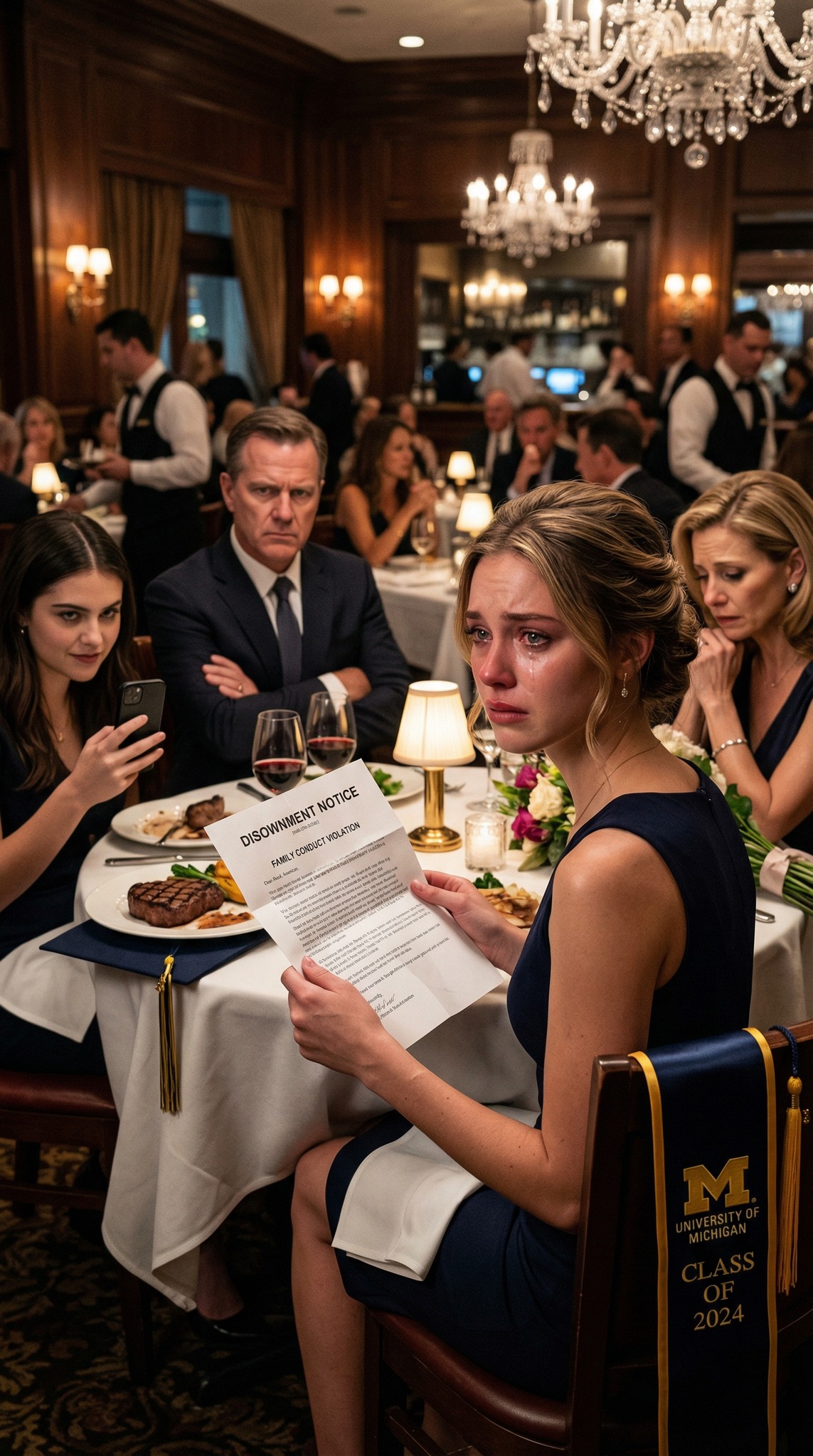 Pour mon dîner de remise de diplôme, mon père a glissé une enveloppe sur la table en disant : « De notre part à tous.» J’ai souri, je l’ai ouverte et j’ai senti mon corps se figer : c’était une lettre de désaveu. Ma sœur me filmait en riant, attendant que je craque. Au lieu de cela, j’ai levé les yeux et j’ai dit : « Merci. Cela me facilite grandement la tâche pour la suite.» Ils pensaient m’avoir anéantie… mais ils étaient loin de se douter que j’avais déjà pris de court.