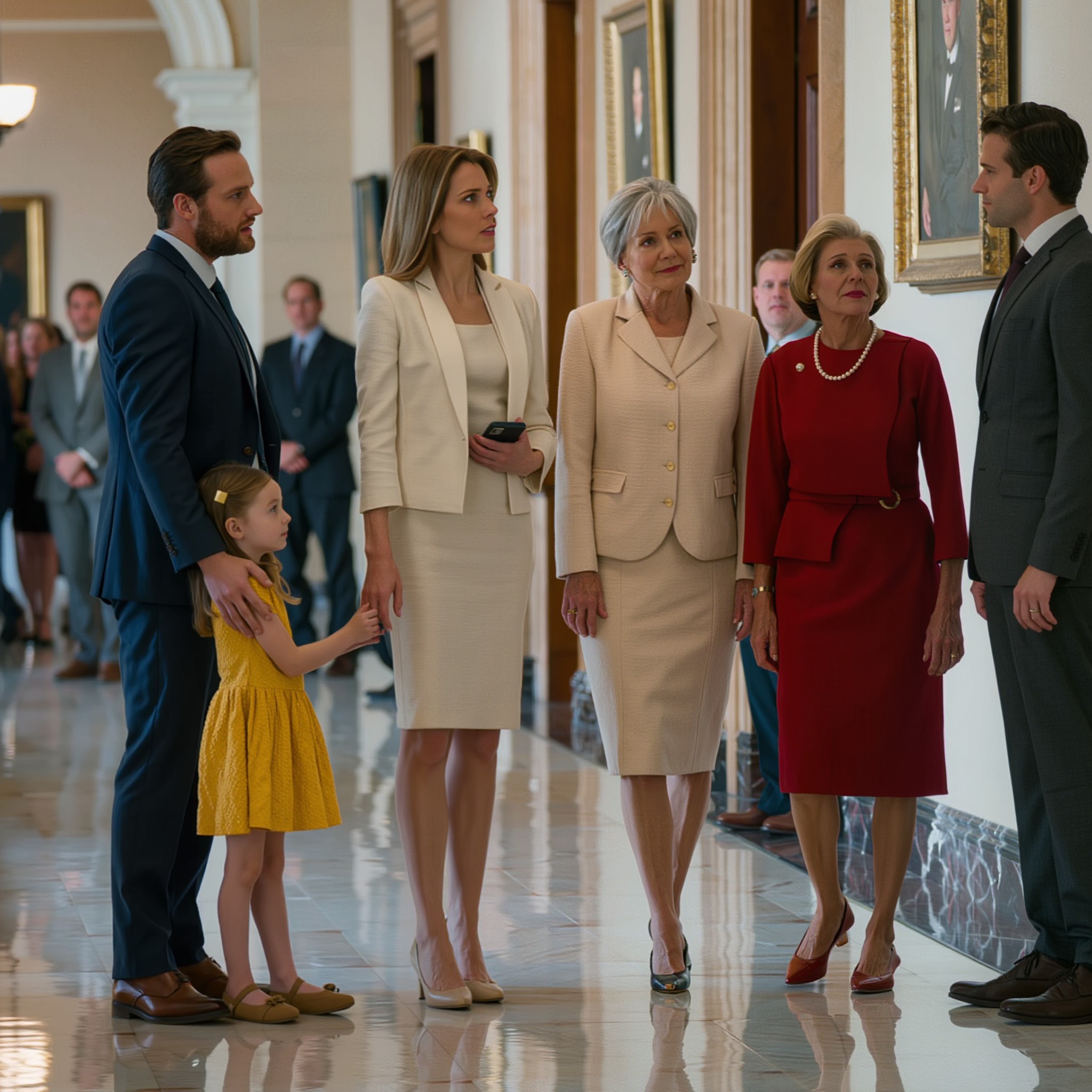 « C’est ridicule », siffla-t-elle, sa robe Valentino rouge paraissant soudain criarde sous les néons. « Nous sommes venus pour vous soutenir. Nous avons chamboulé tous nos plans. »
