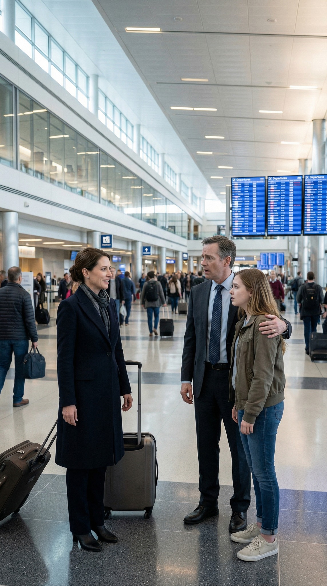 Les roues de ma valise cabine ont heurté une fissure dans le carrelage, me faisant sursauter, mais ce n’est pas ce qui m’a glacé le sang. C’est la vision à trois mètres devant moi : mon mari, Ethan, debout près du tableau des départs, le bras autour de la taille d’une jeune femme blonde, comme si c’était tout à fait normal. Comme si elle lui appartenait.