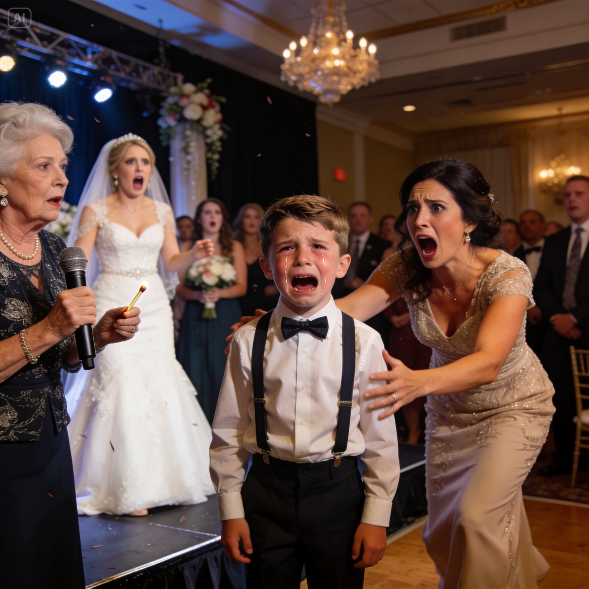 Au mariage de ma sœur, elle prit le micro avec un sourire et annonça : « Et maintenant, le fils de ma sœur va nous offrir un petit spectacle ! » Sans prévenir, ma mère alluma une allumette et mit le feu aux cheveux de mon fils. « Voici le divertissement du jour ! Amusez-vous bien ! » cria-t-elle. La foule applaudit et la salle résonna de rires. Mon fils fondit en larmes. Et puis…