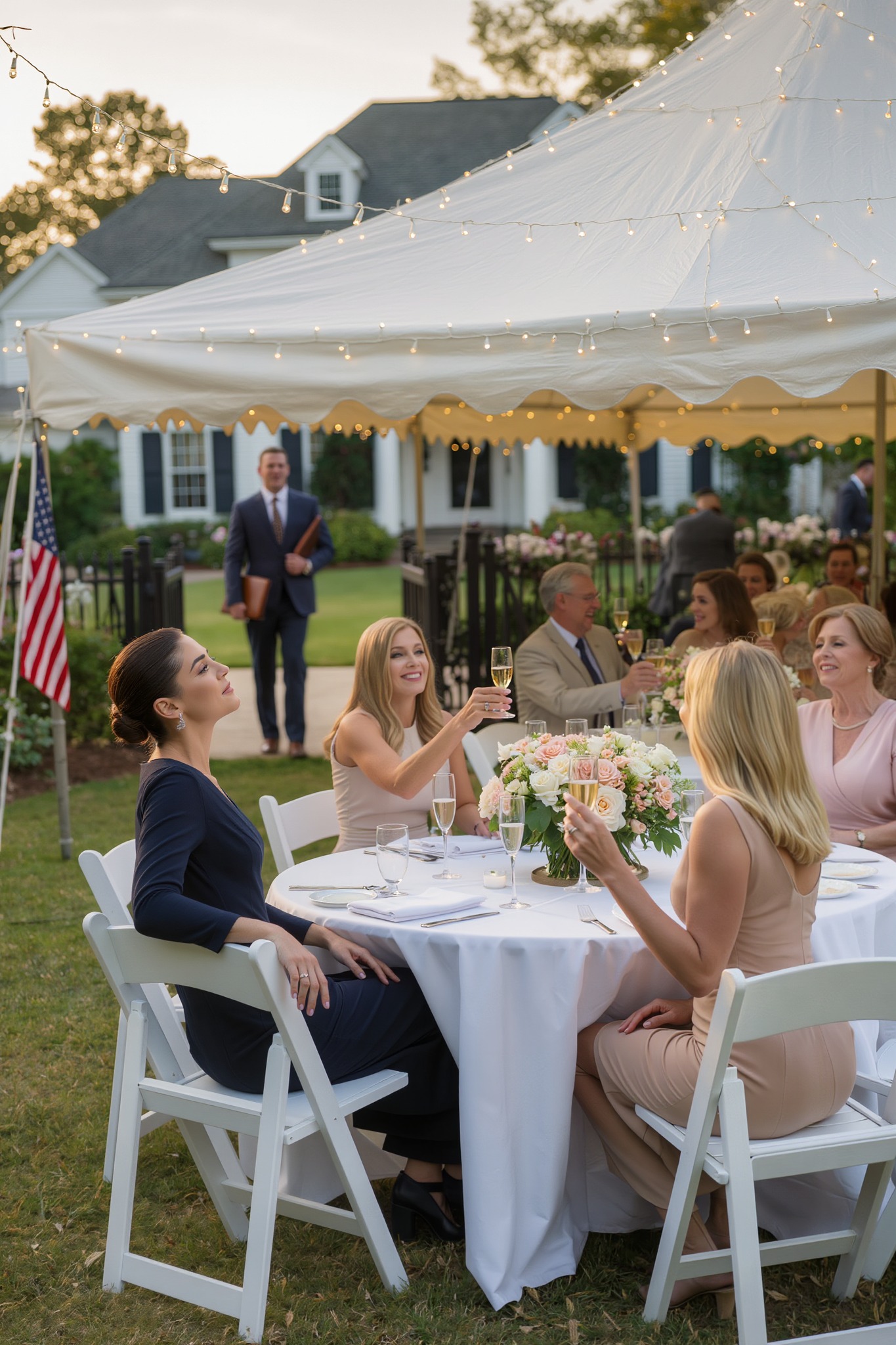 Dehors, l’air nocturne était chaud et calme, chargé d’une légère odeur d’herbe coupée et du bruit lointain d’une voiture qui traversait lentement le quartier. Les guirlandes lumineuses dans la tente derrière moi projetaient une douce lueur dorée à travers la toile.