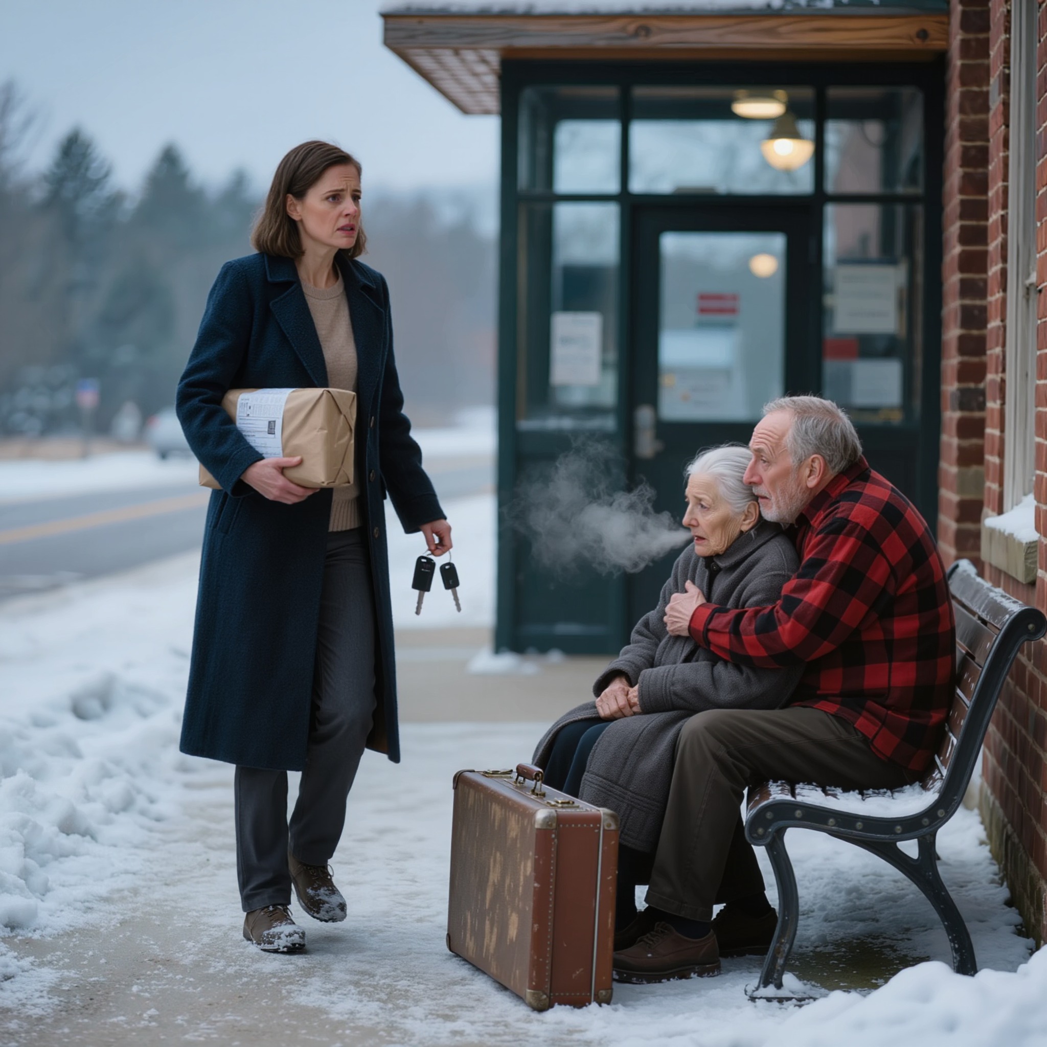 La veille de Noël, une mère veuve aperçut un couple de personnes âgées transies de froid sur un banc de gare routière, serrant contre elles deux valises usées et attendant le fils qui leur avait promis : « Je m’occuperai de tout. » Elle les ramena chez elle pour un repas chaud, une nuit en sécurité et un vrai Noël, sans jamais imaginer que quelques jours plus tard, l’homme qui les avait abandonnés se présenterait à sa porte, exigeant : « Je suis là pour mes parents. »