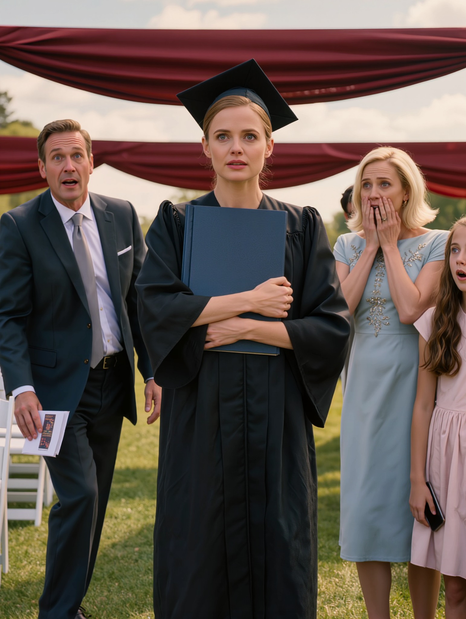 Emma était déjà dans le couloir quand je suis sortie, serrant contre elle le paquet de papier de soie rose. Elle portait ses plus belles chaussures, celles qu’elle avait choisies elle-même chez Target. Blanches, avec une petite boucle qu’elle savait maintenant attacher sans demander d’aide. Elle était si fière de cette boucle.