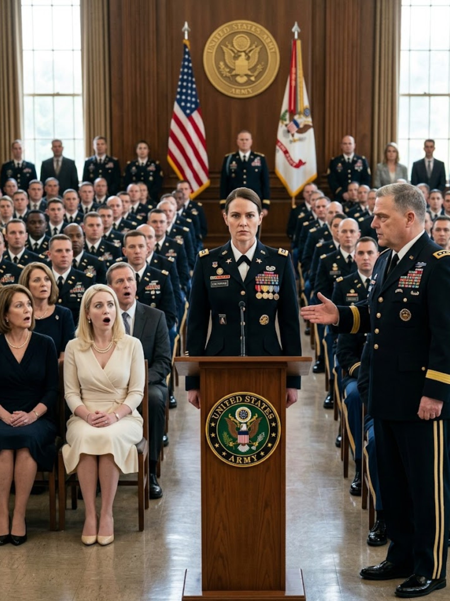 Des rangées d’uniformes. Des invités de la famille. Mes parents au troisième rang. Sabrina à côté d’eux, jambes croisées, téléphone à la main, l’air calme mais impatient. Elle se pencha vers ma mère pour lui dire quelque chose. Ma mère hocha la tête, incertaine.
