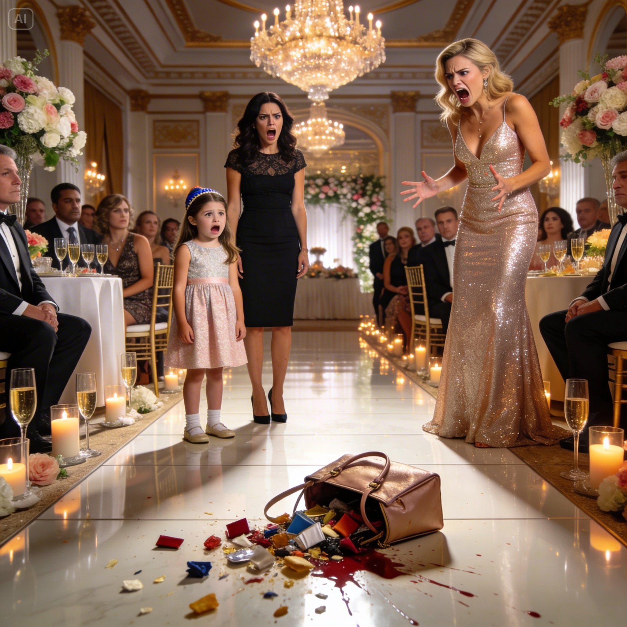 À la fête de fiançailles de ma sœur, elle a soudainement accusé ma fille de lui avoir volé son collier. Avant que quiconque puisse réagir, elle lui a versé du vin rouge sur la tête. Ma fille n’arrêtait pas de clamer son innocence, mais ma sœur a explosé : « Pas de preuves ? Très bien, on va voir ça tout de suite ! » Puis elle a arraché le sac des mains de ma fille et l’a vidé sur le sol. Un silence de mort s’est abattu sur la salle à la vue du liquide répandu.
