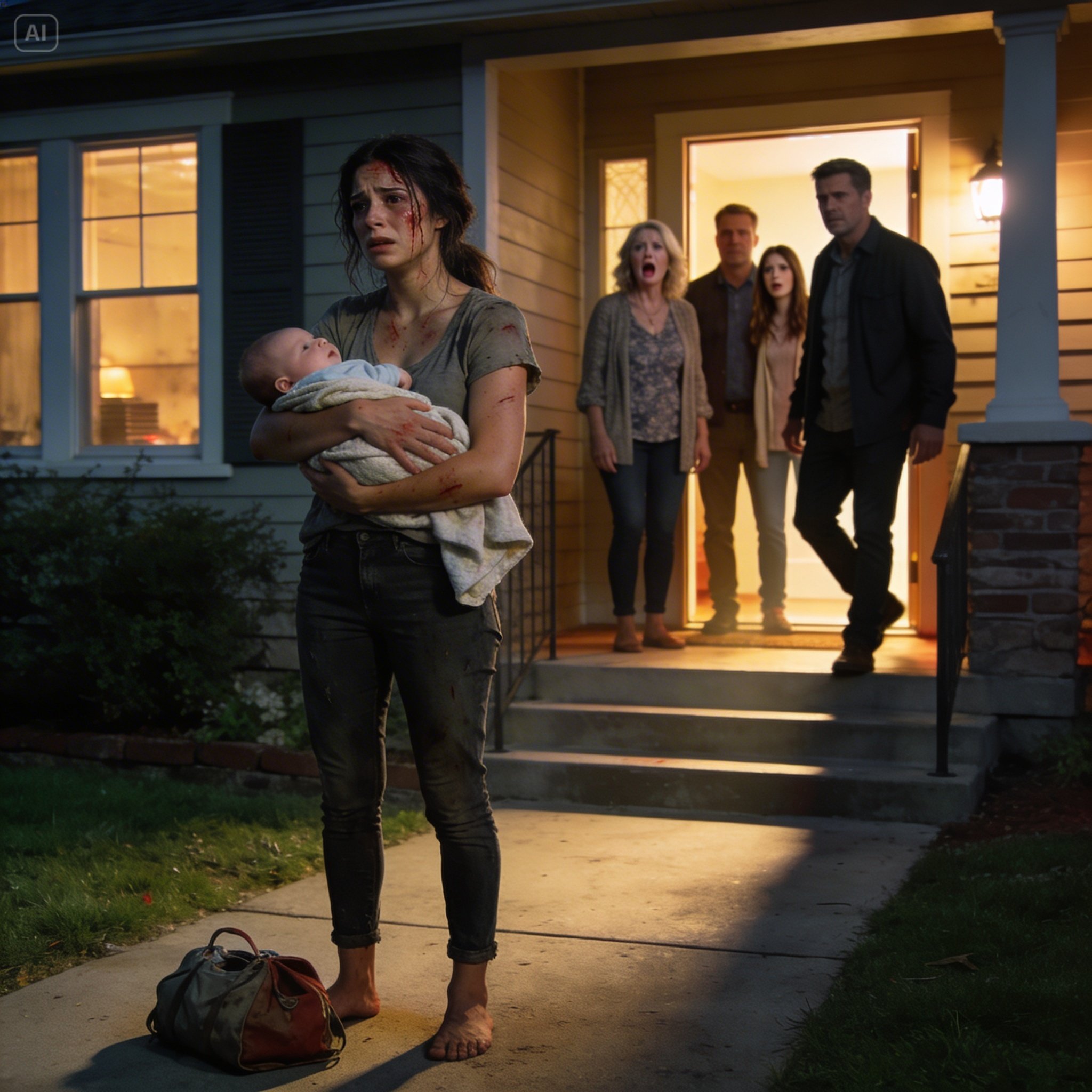 Je suis restée là, sur le perron, transie de froid, encore ensanglantée par l’accouchement, mon fils emmitouflé dans une couverture d’hôpital contre ma poitrine, luttant pour ne pas m’effondrer.