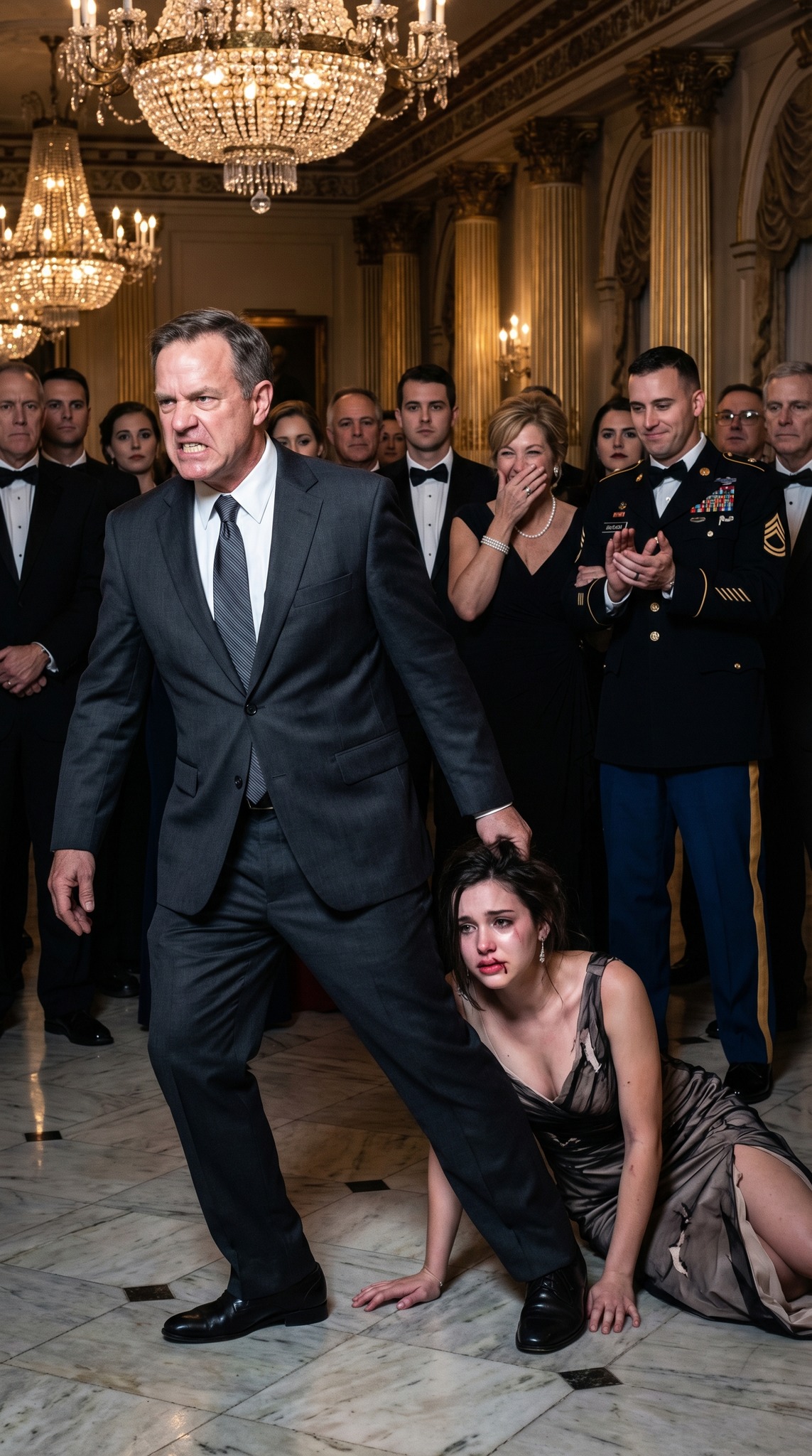 La tension a explosé lorsque Caleb a lancé une blague hautaine et condescendante sur mon manque de service rendu au pays. Quand j’ai finalement tenu bon et rétorqué qu’au moins, ma carrière n’avait pas besoin d’un fan-club pour être valable, l’atmosphère s’est figée. Mon père, un homme dont la réputation reposait sur les « valeurs familiales » et une discipline de fer, n’a pas eu recours aux mots cette fois-ci. Avant même que je puisse cligner des yeux, son poing s’est abattu sur ma mâchoire. Le bruit de l’impact a résonné plus fort qu’un quatuor à cordes. Je suis tombée, la vue brouillée, mais il n’en avait pas fini. Il s’est baissé, m’a attrapée par une poignée de cheveux et m’a traînée sur le sol ciré vers la sortie comme un sac-poubelle.
