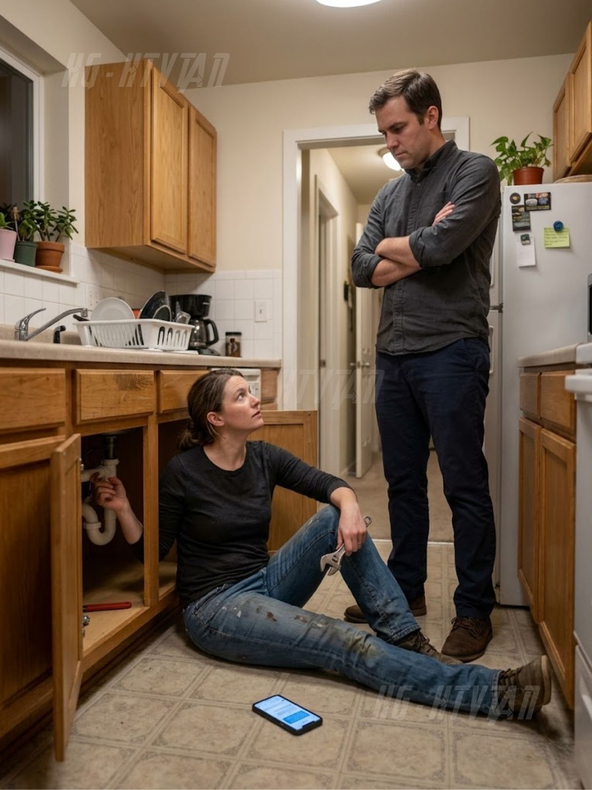 Ses pas rapides et saccadés résonnèrent dans l’appartement. Je reculai sur mes talons et mes genoux, la clé à molette toujours à la main, et levai les yeux pour apercevoir Derek, les bras croisés sur la poitrine, dans l’embrasure de la porte de la cuisine. Il portait encore sa veste de travail, les cheveux bien coiffés, la mâchoire serrée, l’air déjà partagé entre l’irritation et la réprobation, comme un chef prêt à m’expliquer pourquoi l’échéance impossible était désormais de ma responsabilité.