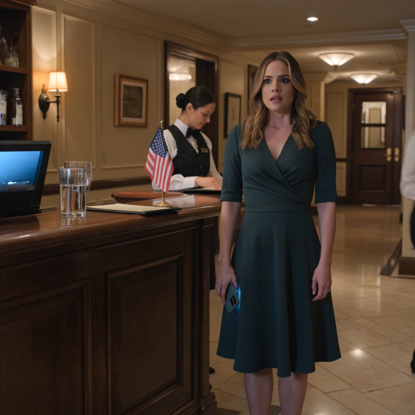 L’hôtesse jeta un coup d’œil à sa tablette, faisant défiler les pages avec des ongles parfaitement manucurés. La douce lumière ambrée du restaurant se reflétait sur le diamant à son poignet.