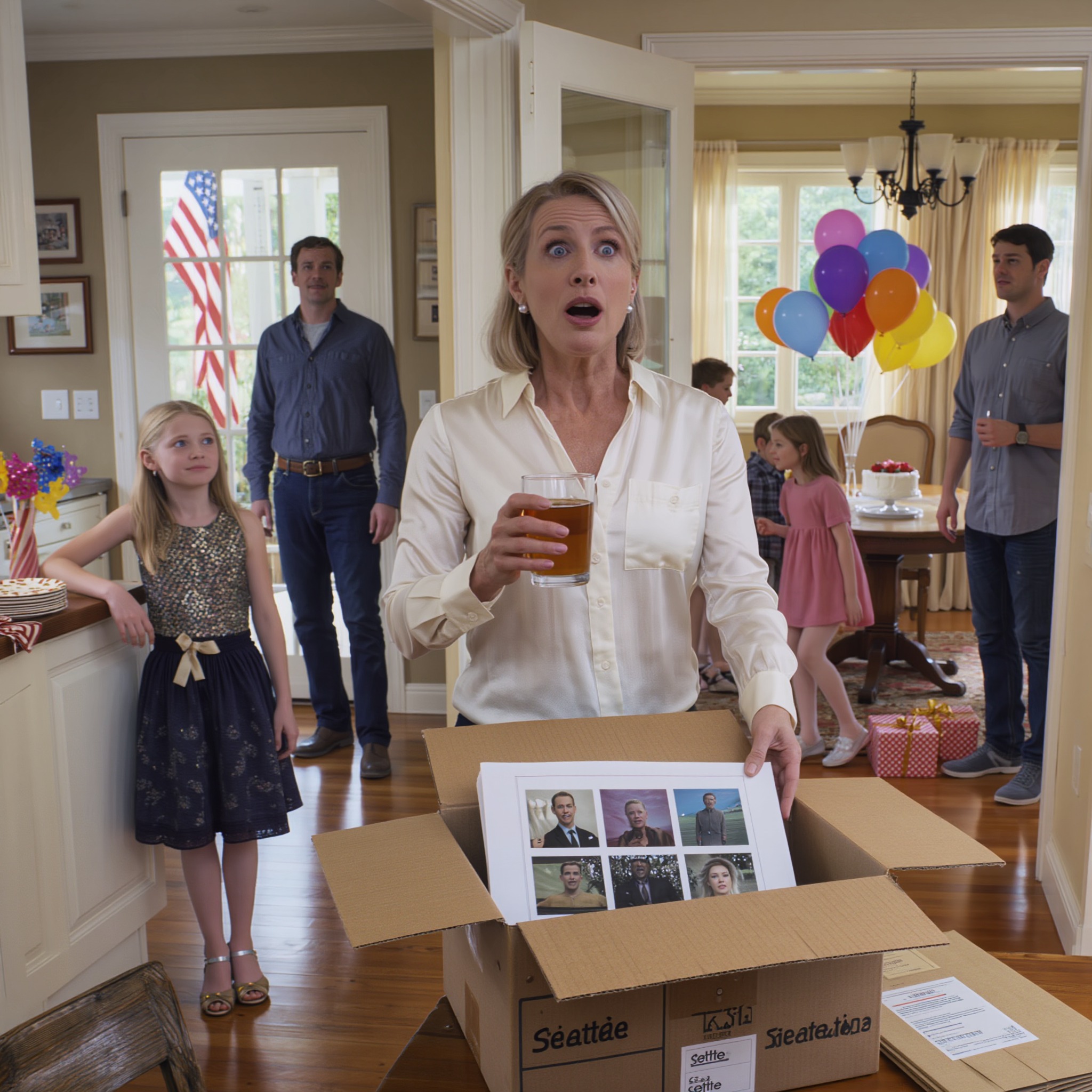 C’est la première fête que Laya organise seule. Rien ne s’accorde vraiment. Les serviettes ne vont pas avec les assiettes. La playlist sonne faux. Le timing est bancal. À un moment donné, elle se surprend à penser qu’Hannah aurait mieux géré la situation. Cette pensée ne la rend pas triste, mais tendue. Marcus se tient près de la porte-fenêtre, observant les enfants courir dehors. Il n’a quasiment pas dit un mot de tout l’après-midi. Ses parents le regardent de temps à autre, leurs expressions calmes et impénétrables. Et au centre de tout cela, ma mère se tient là, comme si elle attendait ce moment précis. Elaine Cole est impeccablement vêtue, coiffée, maquillée, sereine. Elle a un public. Sur la console du couloir, entre un bol de clés et une vieille photo encadrée, se trouve un carton. Adresse de retour : Seattle, Washington. Personne ne l’a encore ouvert. On coupe le gâteau. Noah s’étale du glaçage sur le visage et tout le monde rit.